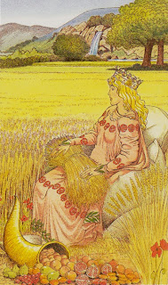 O terceiro arcano do tarot carrega em si os atributos do número que representa. O três está tradicionalmente associado ao processo criativo e multiplicador! O período de gestação da maioria dos seres vivos é composto por números divisíveis por três (Os nove meses dos homens, os doze meses dos elefantes, as três semanas dos ratos, etc.), e por isso mesmo representa a abundância, a fertilidade, a sorte e a proteção. O arcano de A Imperatriz tem sido muitas vezes associado ao planeta Vênus na correspondência astrológica. Esse planeta é o regente de touro e libra, signos que regem a beleza, a gentileza e as relações humanas de um modo sempre envolvente e íntimo. O três é relacionado com o planeta Júpiter, o arauto da boa fortuna, da expansão e do crescimento em todos os sentidos. Costumo considerar A Imperatriz como uma conjunção astrológica de Vênus/Júpiter, ou seja, com intenso envolvimento em questões relativas ao prazer, o bem estar e as relações sempre de modo positivo e instigante, mas um tanto frívolo e sensualista demais por vezes! Essa conjunção expressa no arcano também incentiva a criatividade e a sensibilidade artística. A Imperatriz é a musa inspiradora dos pintores, poetas e cineastas… Seu arquétipo se estende desde a velha mãe de avental até a atriz de cinema ou musa da música pop que incendeia a fantasia de adolescentes de ambos os sexos! O feminino pleno é o campo dos seus domínios. A maternidade, a beleza e a nutrição, a arte e a inteligência inspirada (Comum nos artistas) são seus atributos naturais. Tudo isso, porém não a torna uma cuidadora menos eficiente e apaixonada. Na mitologia o mito que melhor a representa é a Deusa Deméter. A personalidade que melhor incorporou suas características foi Lady Di.